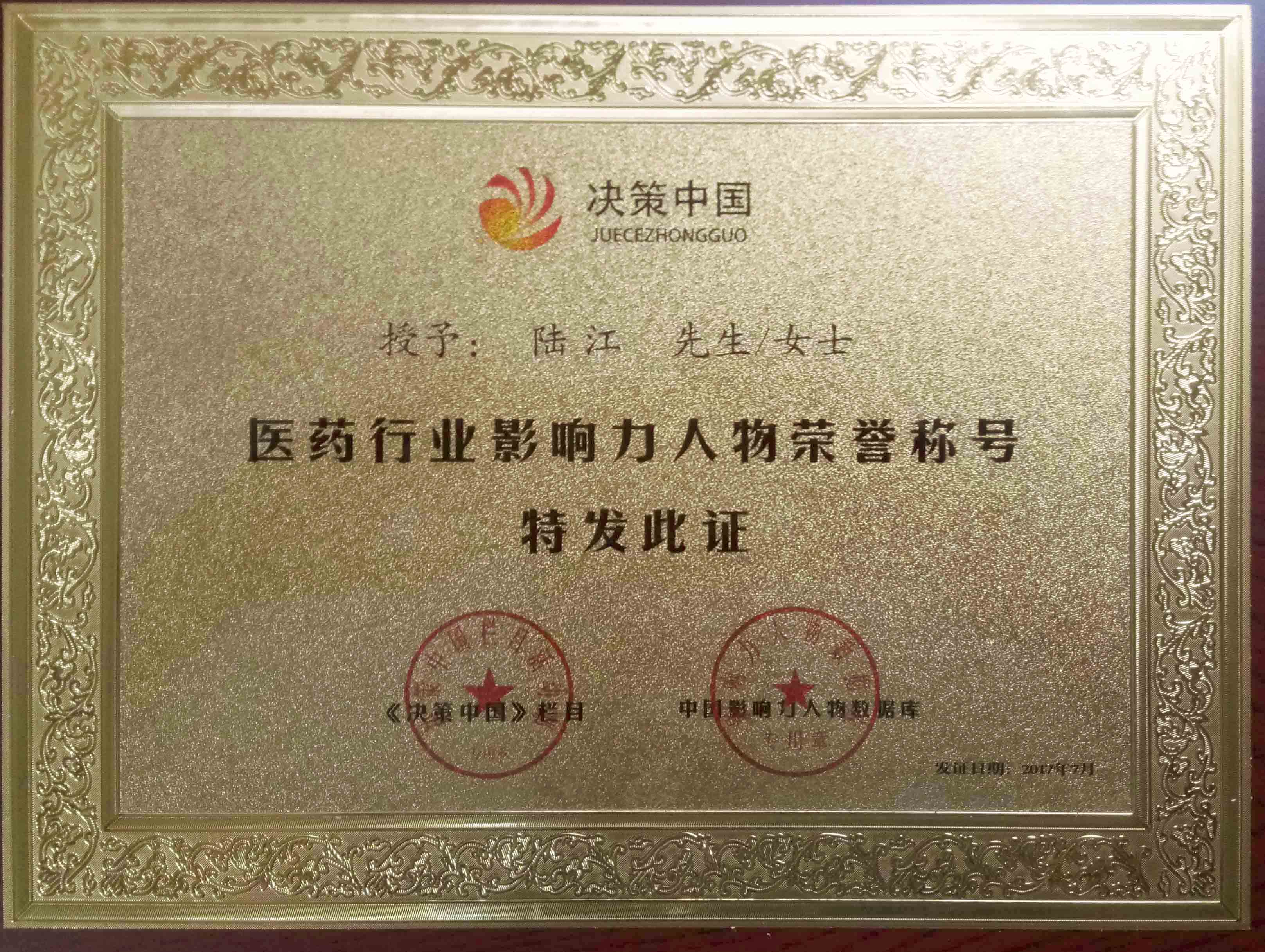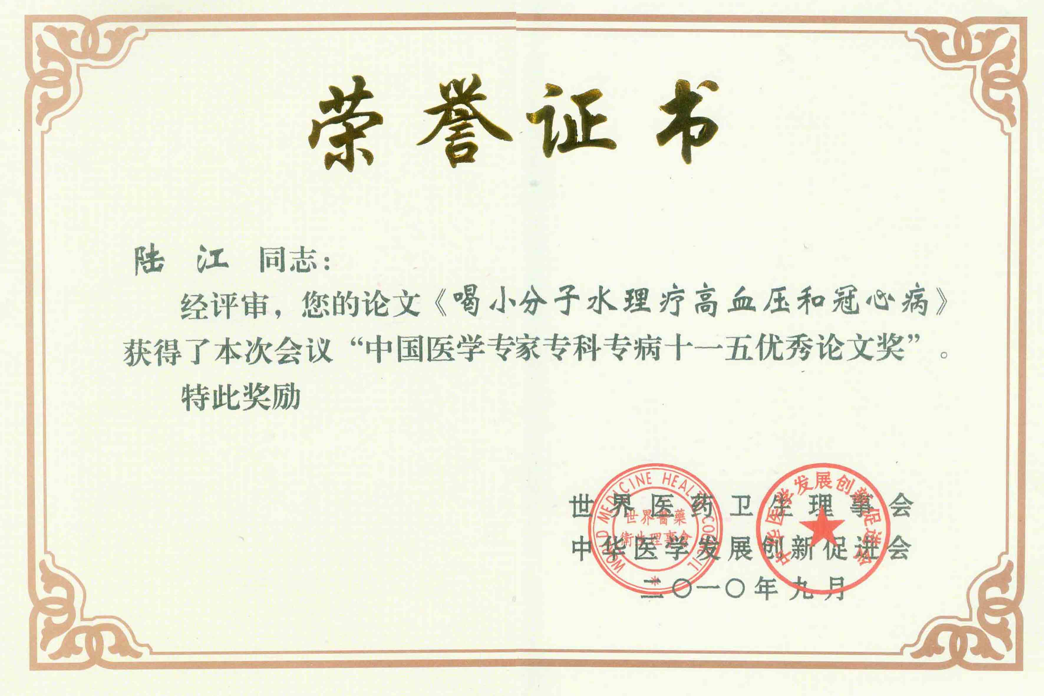 陸江獲得中國醫(yī)學(xué)專科專病優(yōu)秀專家恃別貢獻(xiàn)獎